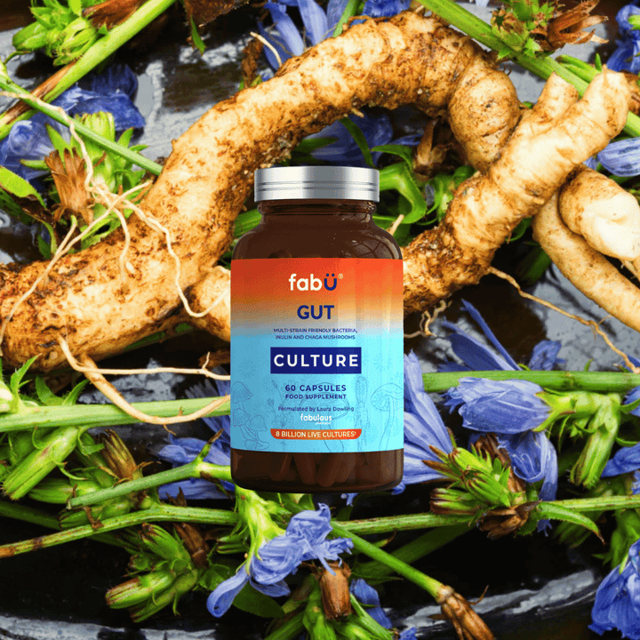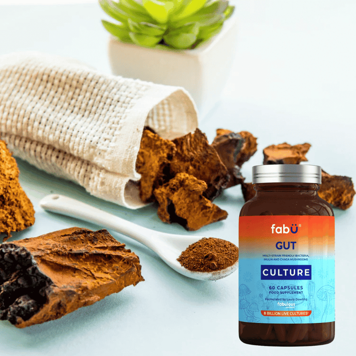 fabÜ SHROOMS GUT is based on 8 billion scientifically proven multi-strain live cultures. These have been blended with natural fibres, inulin and the edible mushroom Chaga, to increase your natural gut bacteria.