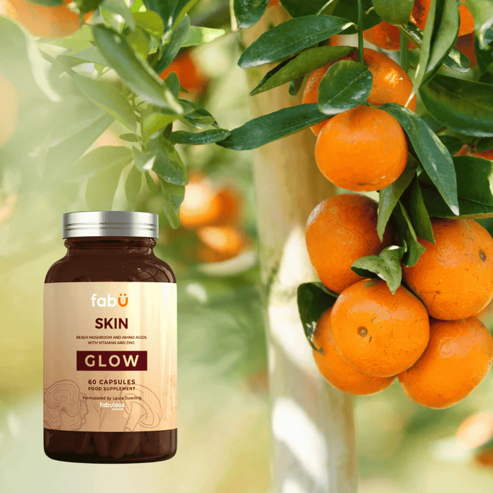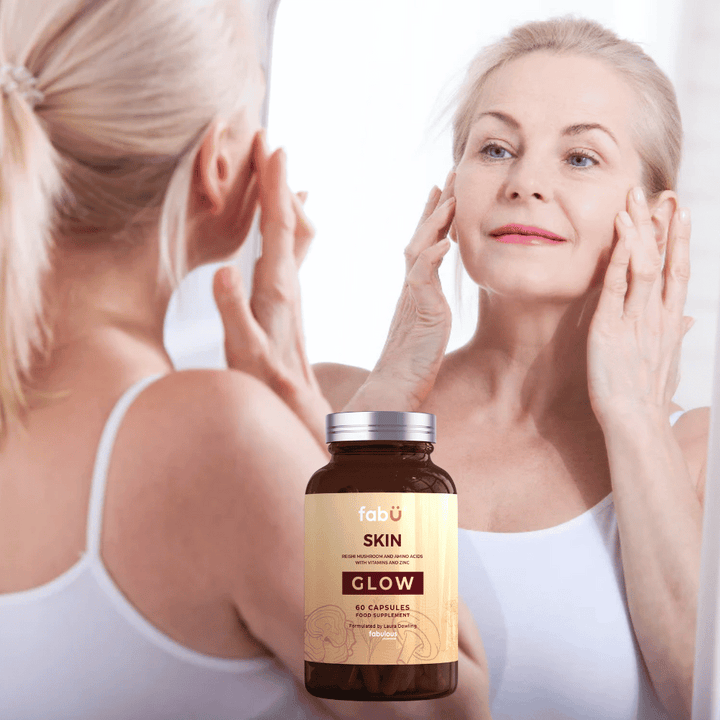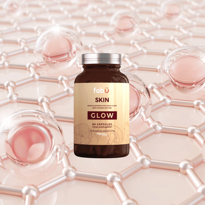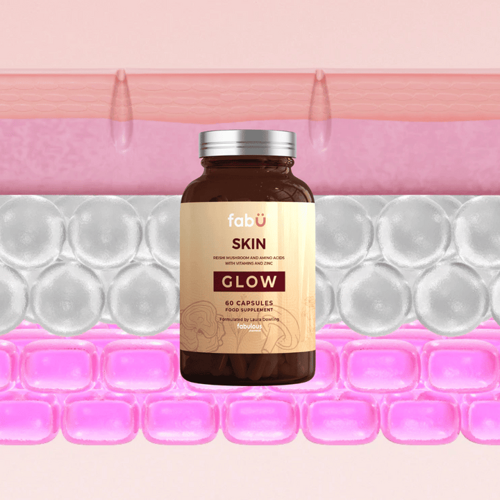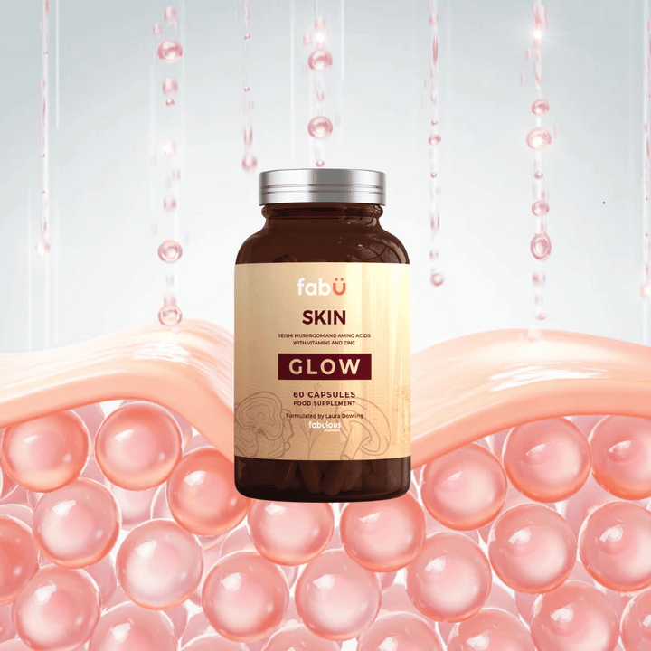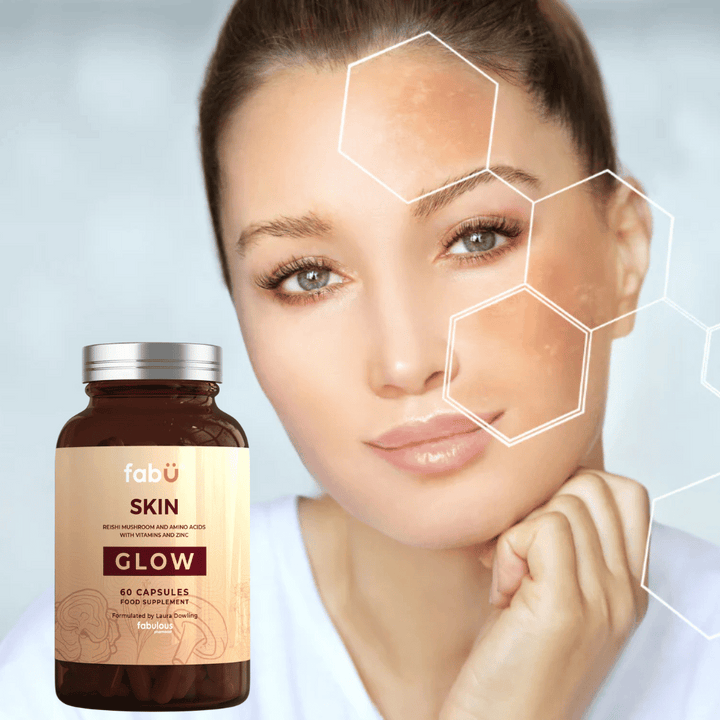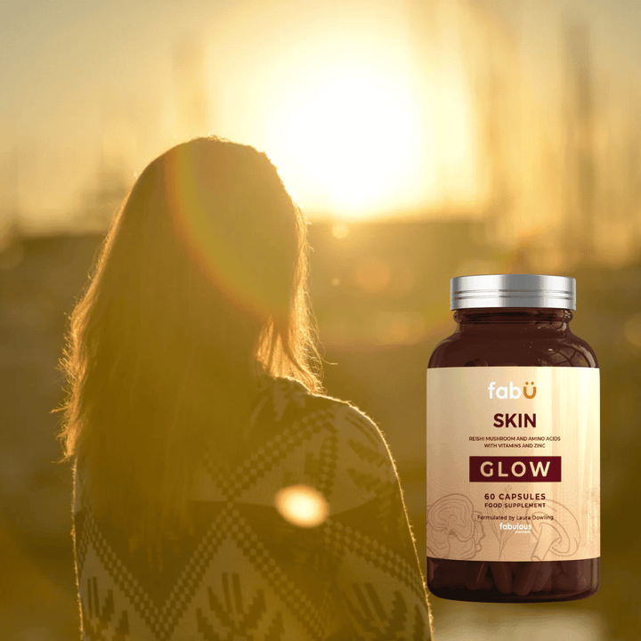 fabÜ SKIN GLOW is based on the edible mushroom Reishi, blended with vitamins, amino acids and Zinc, tailored. Supports normal collagen formation, skin function, cell division and protects skin cells from oxidative stress*