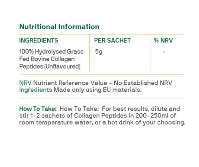 100% Hydrolised Grass Fed Bovine Collagen Peptides (Unflavoured) | 5g | - |