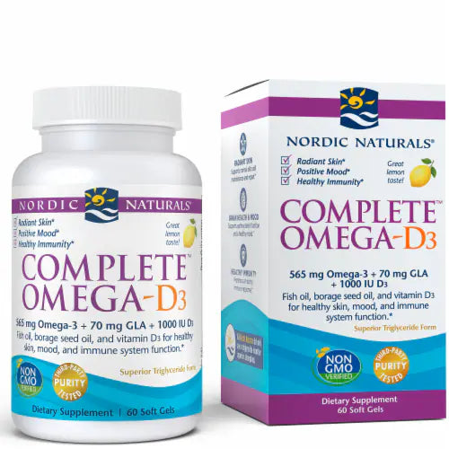 Complete omega-3-6-9-d provides full-spectrum essential fatty acid support that blends omega-3s epa and dha from fish oil for a healthy heart, normal brain function, with omega-6 gla from borage oil for healthy joints and skin, and omega-9. To this, we've added 25 ug natural vitamin d3 for enhanced bone, immune, and mood health.