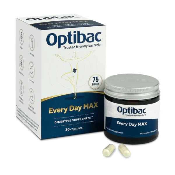 OptiBac Every Day Max is a top quality, maximum strength good bacteria supplement for everyday use. Providing premium daily support to complement your natural gut bacteria. It contains 75 billion live cultures, including 3 extensively studied strains; among them L. acidophilus NCFM® – the most researched acidophilus strain in the world.