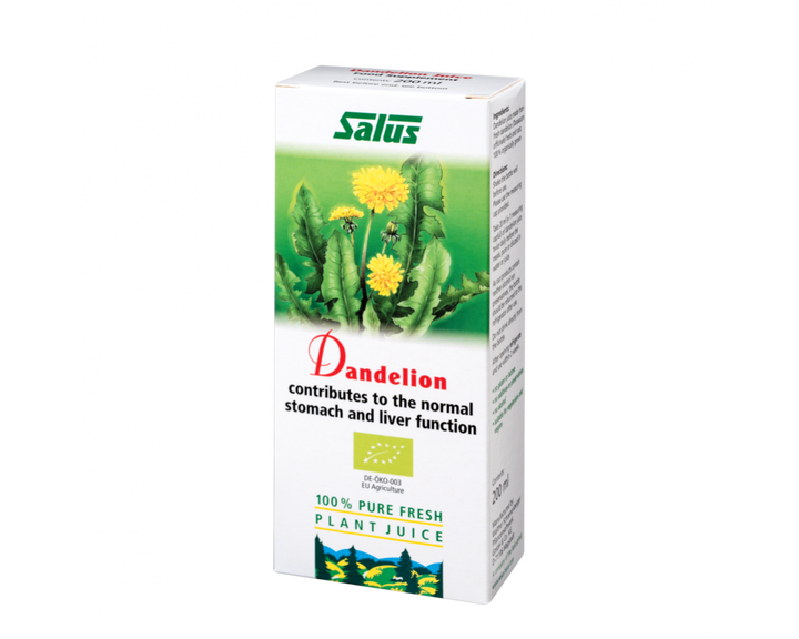 Dandelion juice made from fresh dandelion (Taraxacum officinale) herb and root, 100% organically grown.