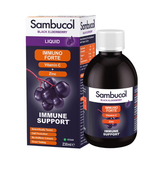 Sambucol Immuno Forte Black Elderberry Liquid With Vitamin C & Zinc 230ml
